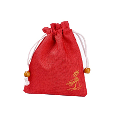Мешочек из искусственного льна с орнаментом 10х14 см, красный Мешочек из искусственного льна с орнаментом 10х14 см, красный