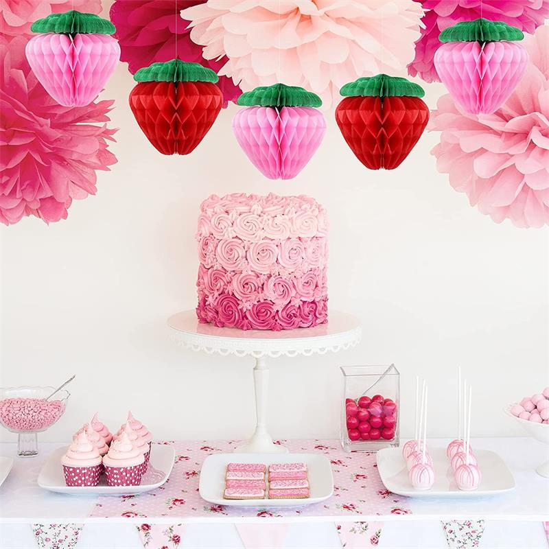 Украшение в виде клубничного сотового шара