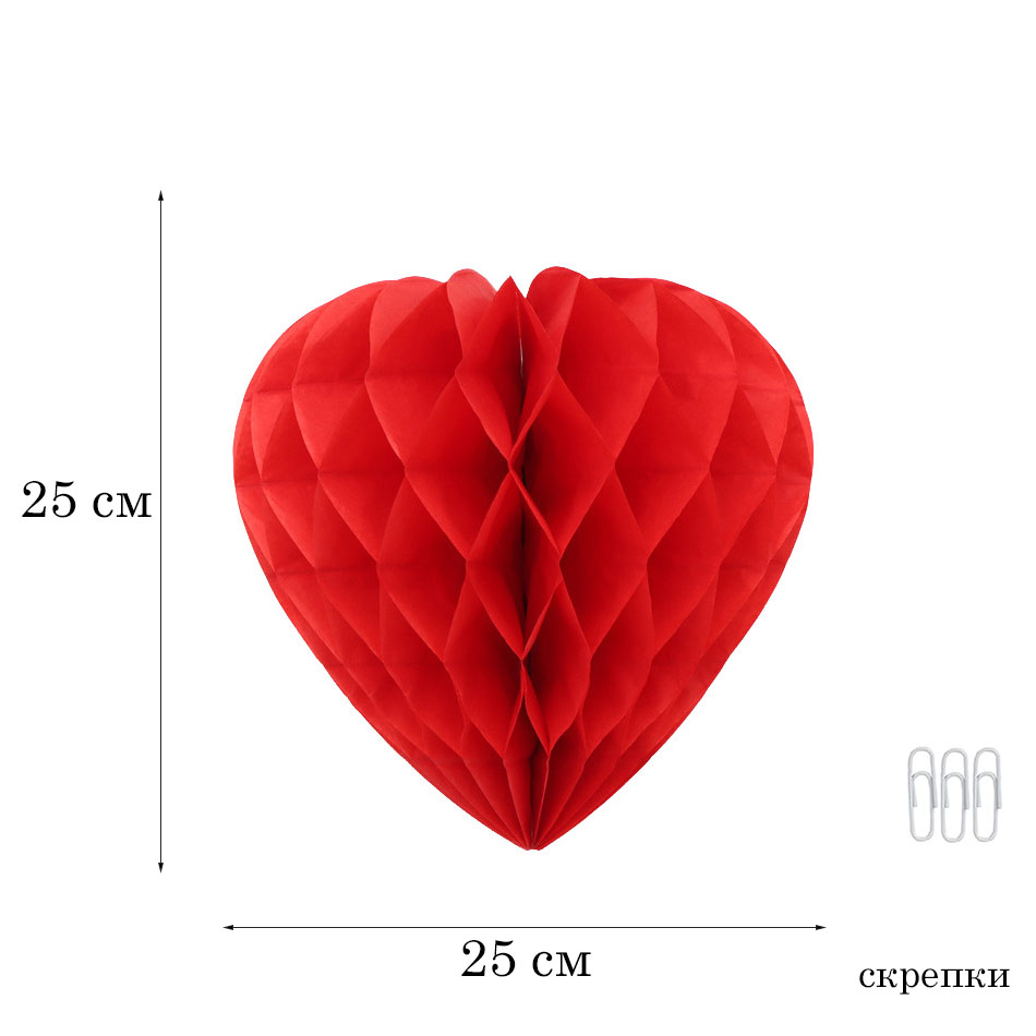 Бумажное украшение "Сердце" 25 см, красный