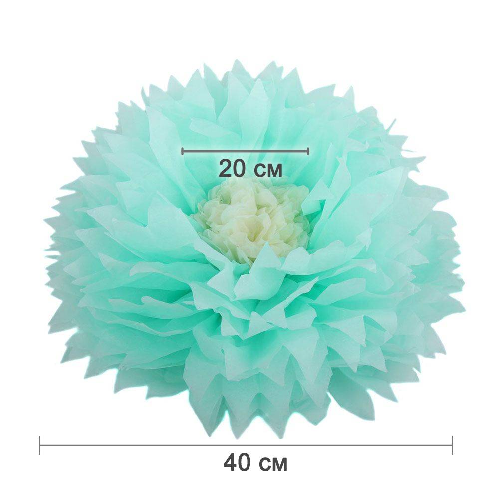 Бумажный цветок 40 см мятный+айвори