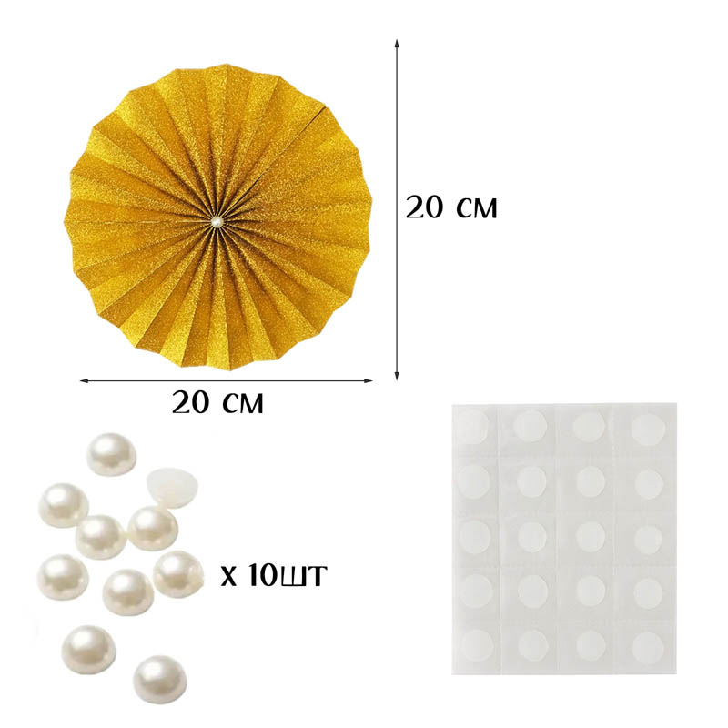 Фанты выполнены из двусторонней бумаги с устойчивым блестящим покрытием, похожим на глиттер. Главное преимущество материала в том, что он не осыпается и не шелушится, сохраняя безупречный вид до и после использования. С помощью прозрачных клейких точек бусины легко и надежно фиксируются в центре каждого фанта, позволяя собрать готовый декор за несколько минут.