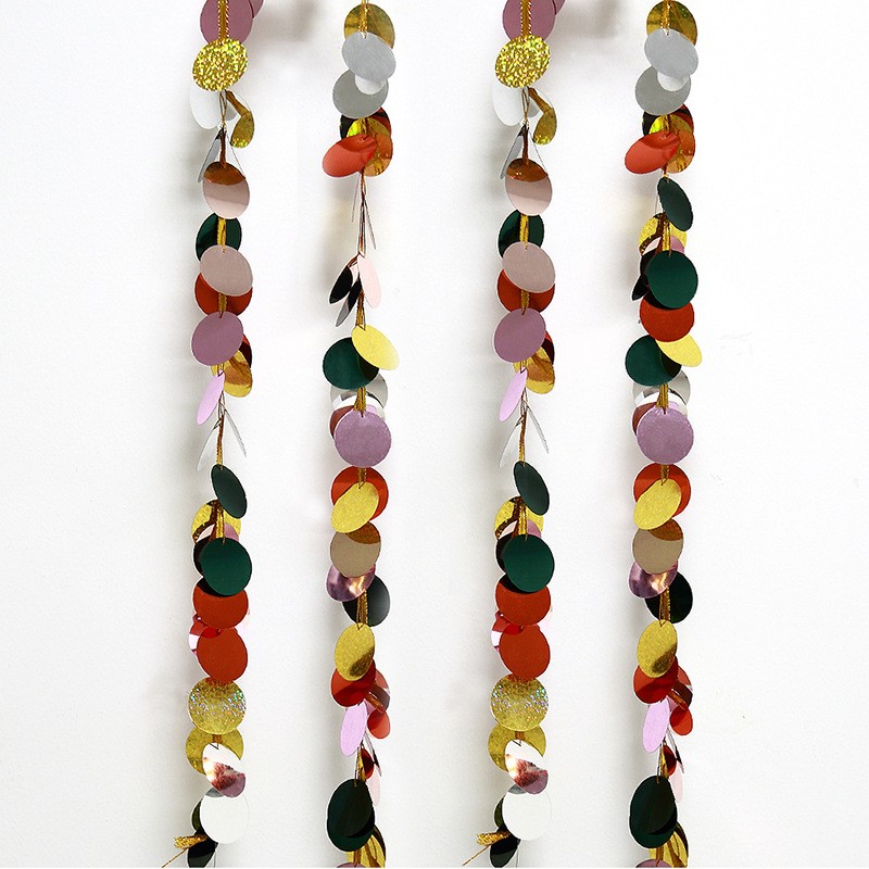 Декоративная гирлянда представляет собой расположенные на нити кружочки пайеток.