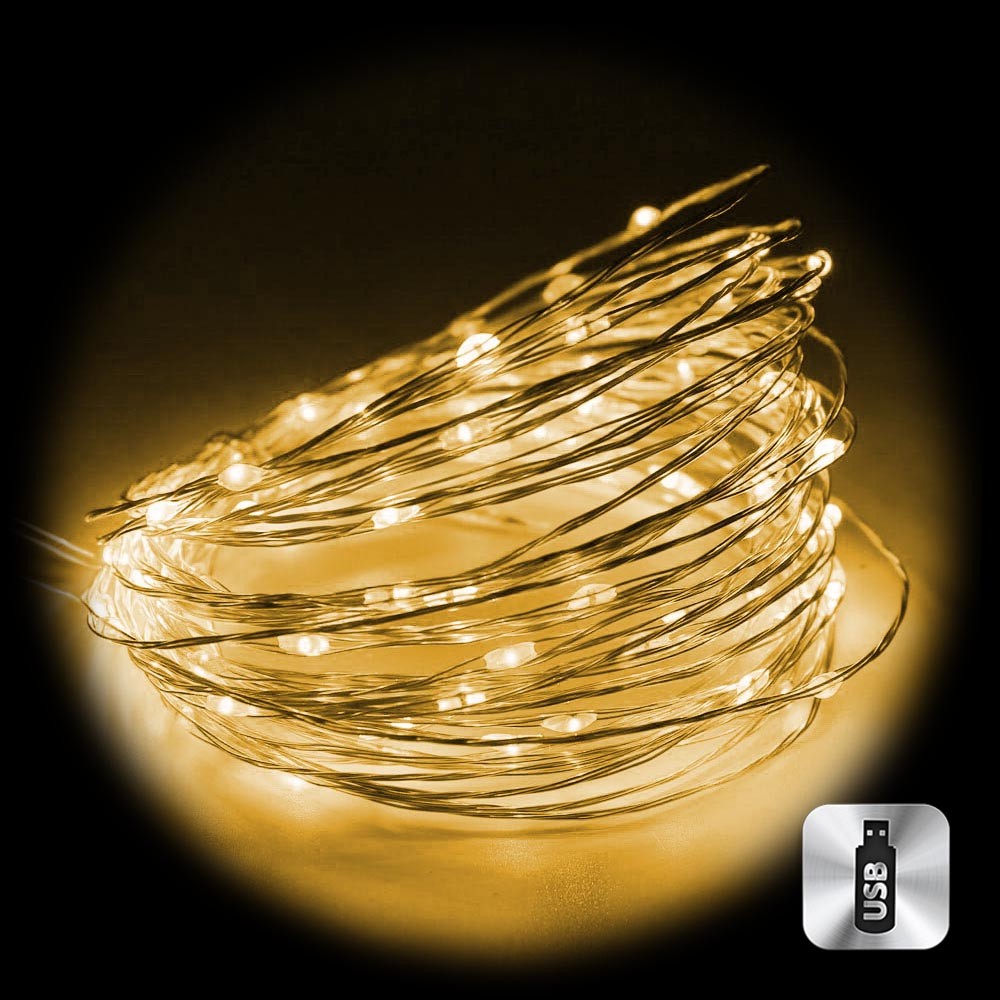 Нить "Роса" медь, 10 м х 100 диодов, от USB, теплый белый