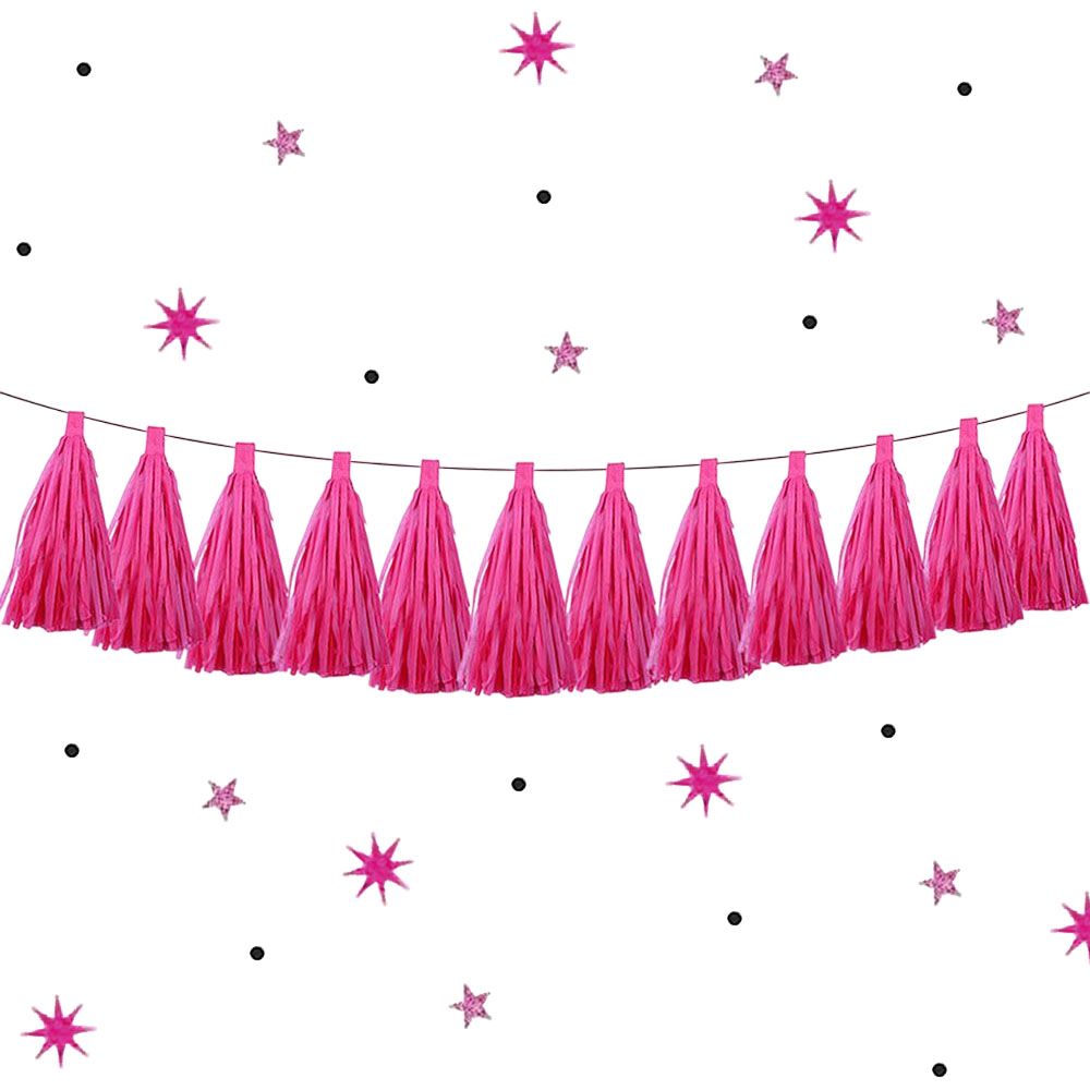 Гирлянда тассел 12 кисточек по 10 листов, амарантовый