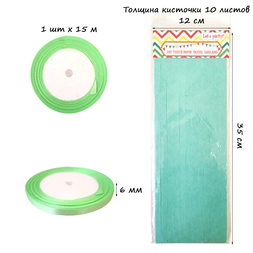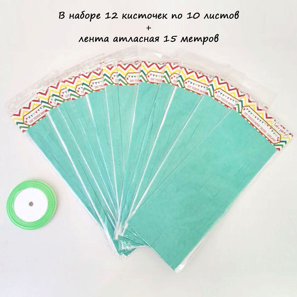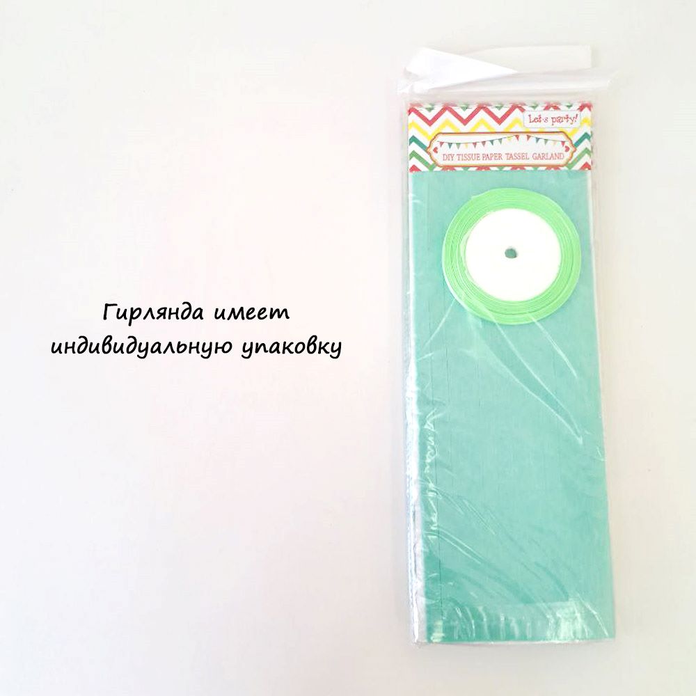 Гирлянда тассел 12 кисточек по 10 листов, мятный