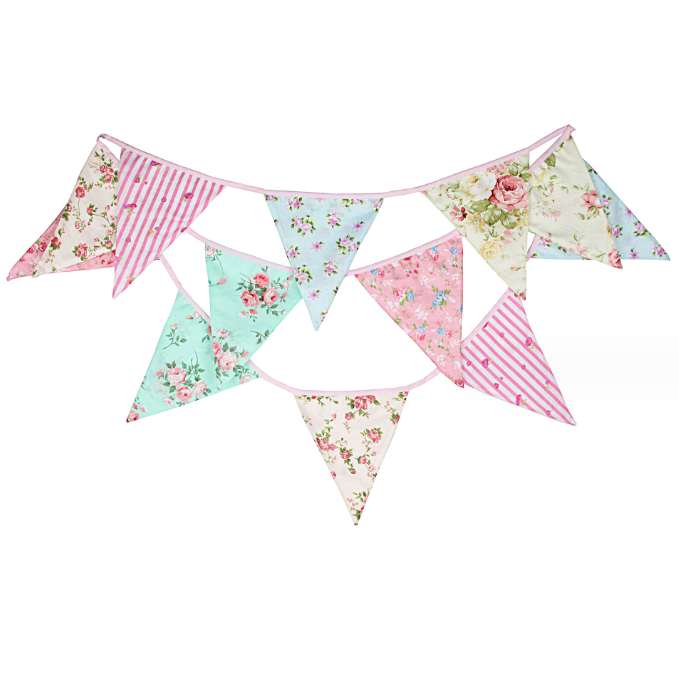 Гирлянда состоит из 12 флажков. Расстояние между флажками - 6 см, общая длина составляет 4 м.