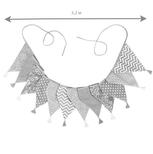 Гирлянда состоит из 12 флажков, общая длина составляет 3,2 м