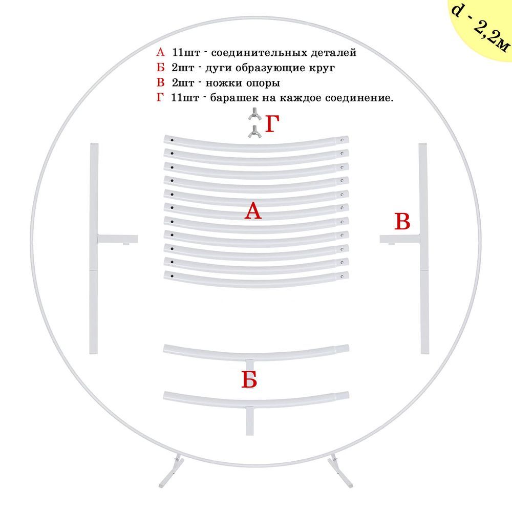 Металлическая конструкция круглой формы в белом цвете. Используется для создания фотозон на мероприятиях, свадьбах и праздниках. Легко собирается и разбирается.