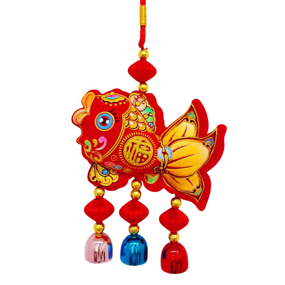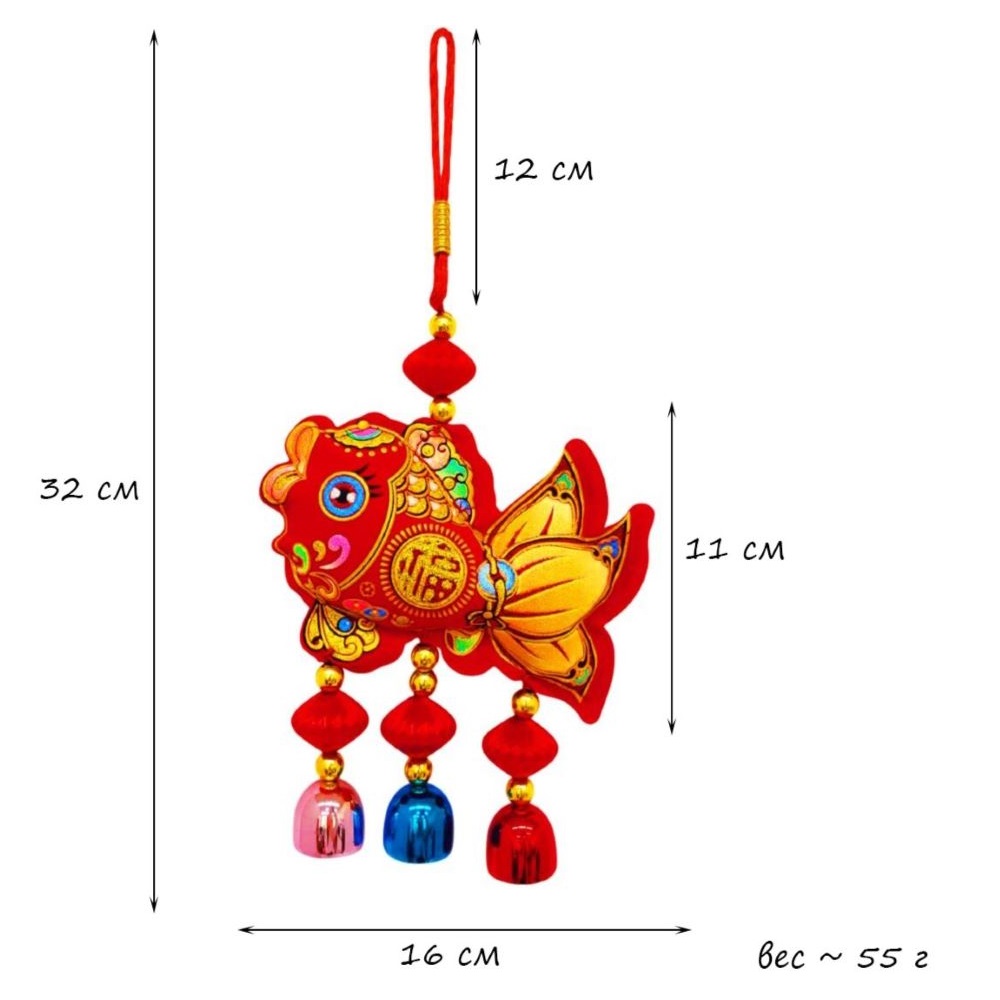 Китайская подвеска с колокольчиками 16х32см, Рыбка