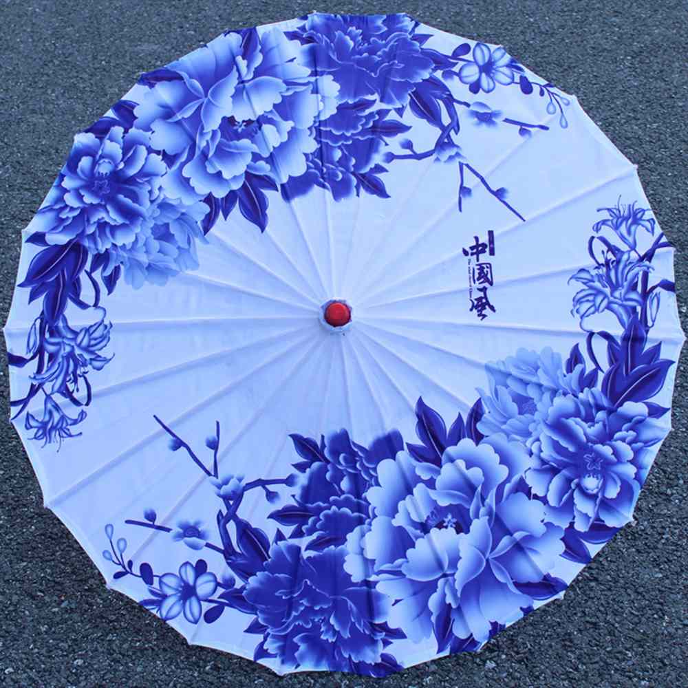Китайские тканевые зонтики Гжель 82х54см, №9