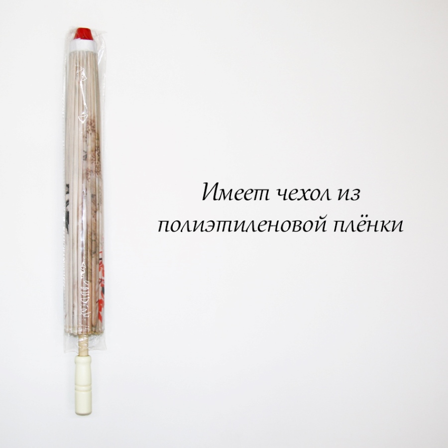 Каркас зонтика выполнен из дерева,купол зонта изготовлен из водоотталкивающего материала,который не пропускает воду.