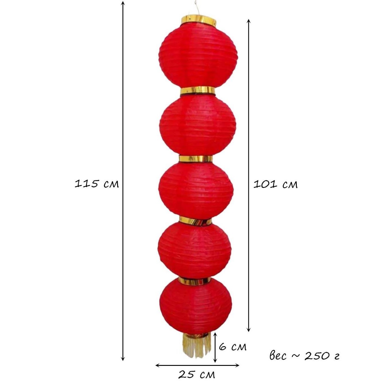 Круглый китайский фонарь состоит из пяти ярусов диаметром 25 см каждый.