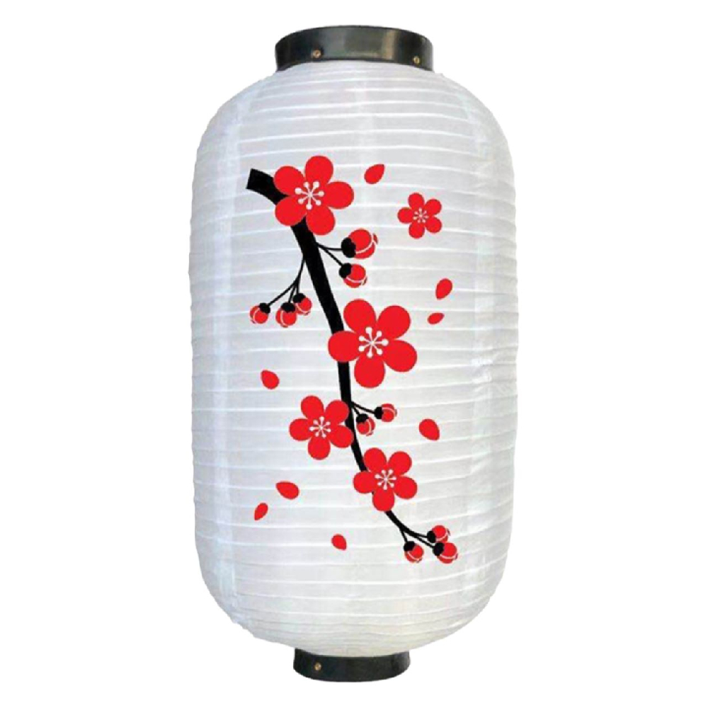 Китайский фонарь Цилиндр "Сакура" крупная 30х55 см, белый