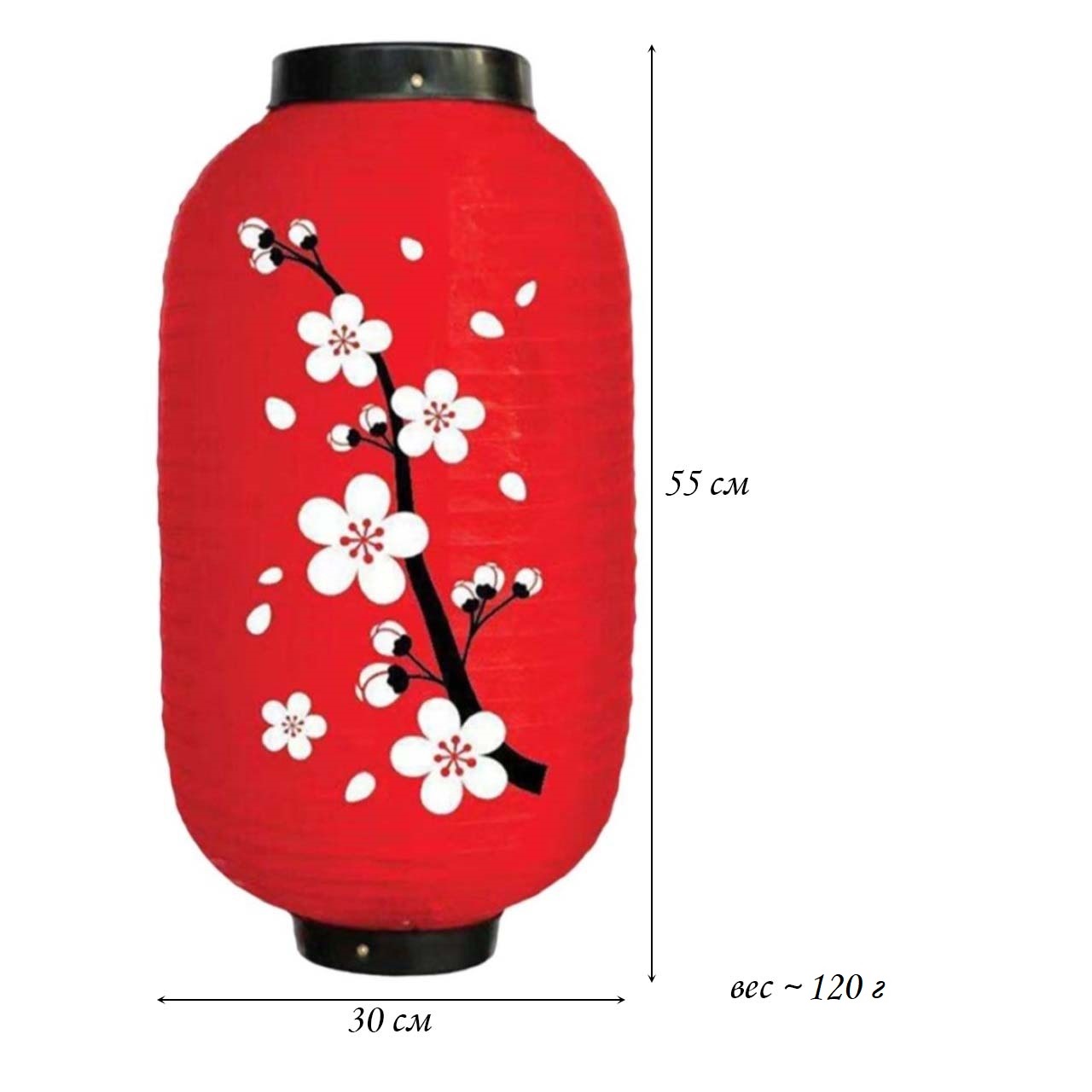 Китайский фонарь Цилиндр "Сакура" крупная 30х55 см, красный