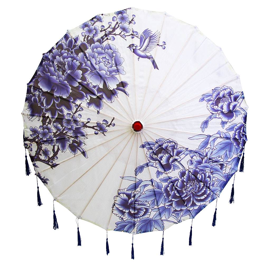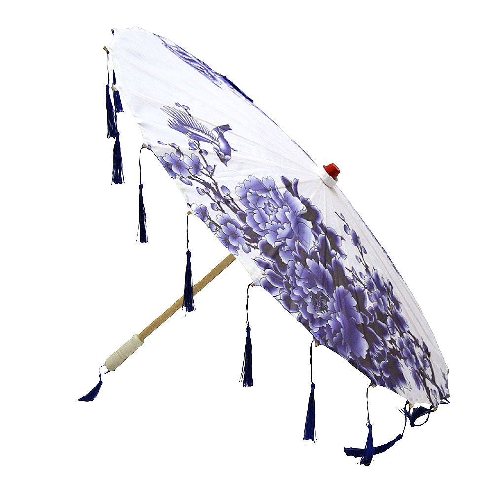 Китайские тканевые зонтики цветочные с кисточками 82х54 см