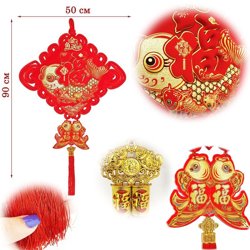 Китайский узел ромб красный рыбки 50х90см, Достаток