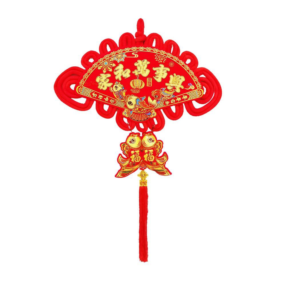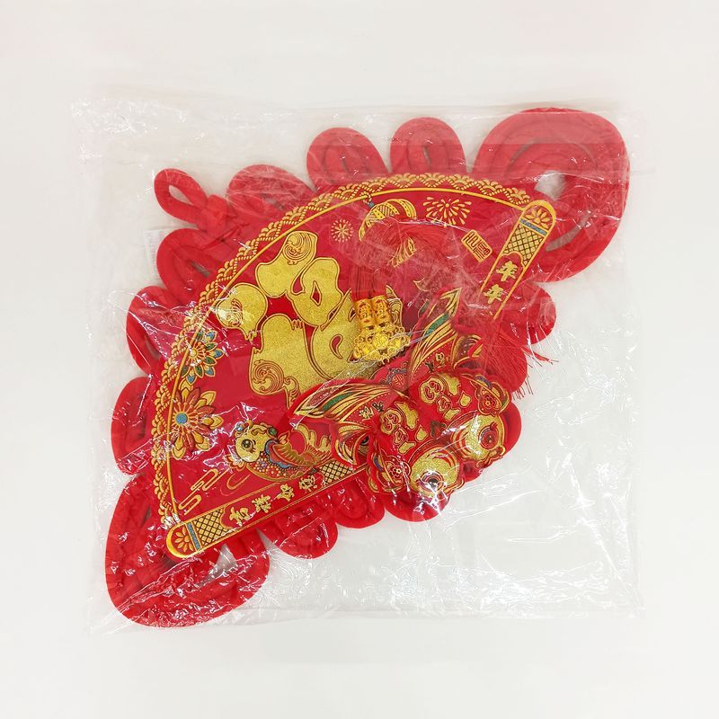 Традиционный китайский узел в форме ромба с символичным дизайном. Яркое сочетание красного бархата и золотых элементов создает эффектный акцент в интерьере.