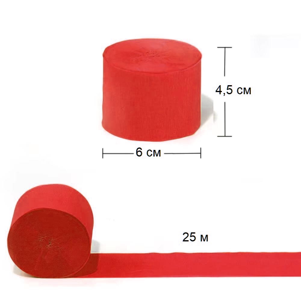 Крепированная лента 4,5 см х 25 м, красный