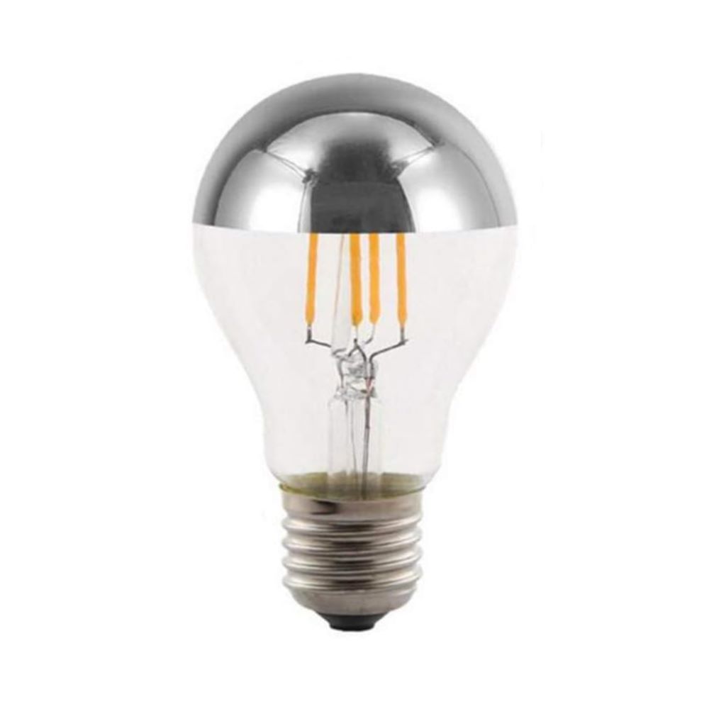 Лампа светодиодная A60 со стандартом патрона E27 с теплотой свечения 2700 K Серебро. Образует уникальный рисунок свечения, благодаря специальному напылению верхней части колбы. Имеет низкий уровень энергопотребления – всего 4 Вт. Характеризуется долгим сроком службы – не менее 20 000 ч. Уникальный рисунок свечения станет удачным выбором такой лампы в кафе или ресторане.