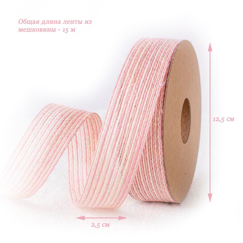 Лента из цветной мешковины,розовый 2,5см х 15м
