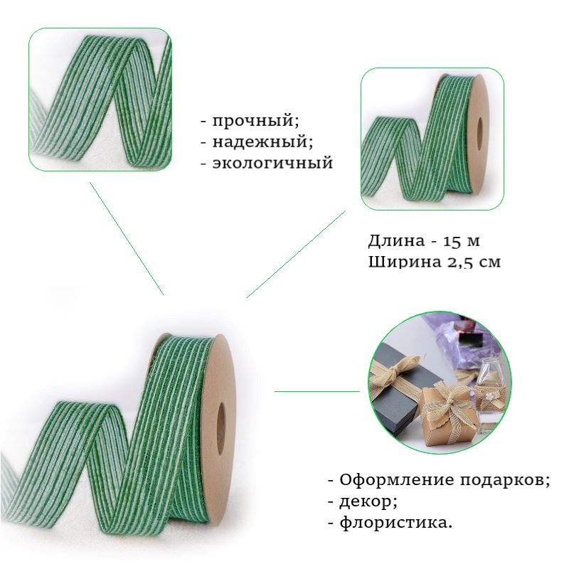 Лента подходит для рукоделия, флористики, создания букетов, бантов, упаковки подарков, новогодней упаковки и других творческих идей.
