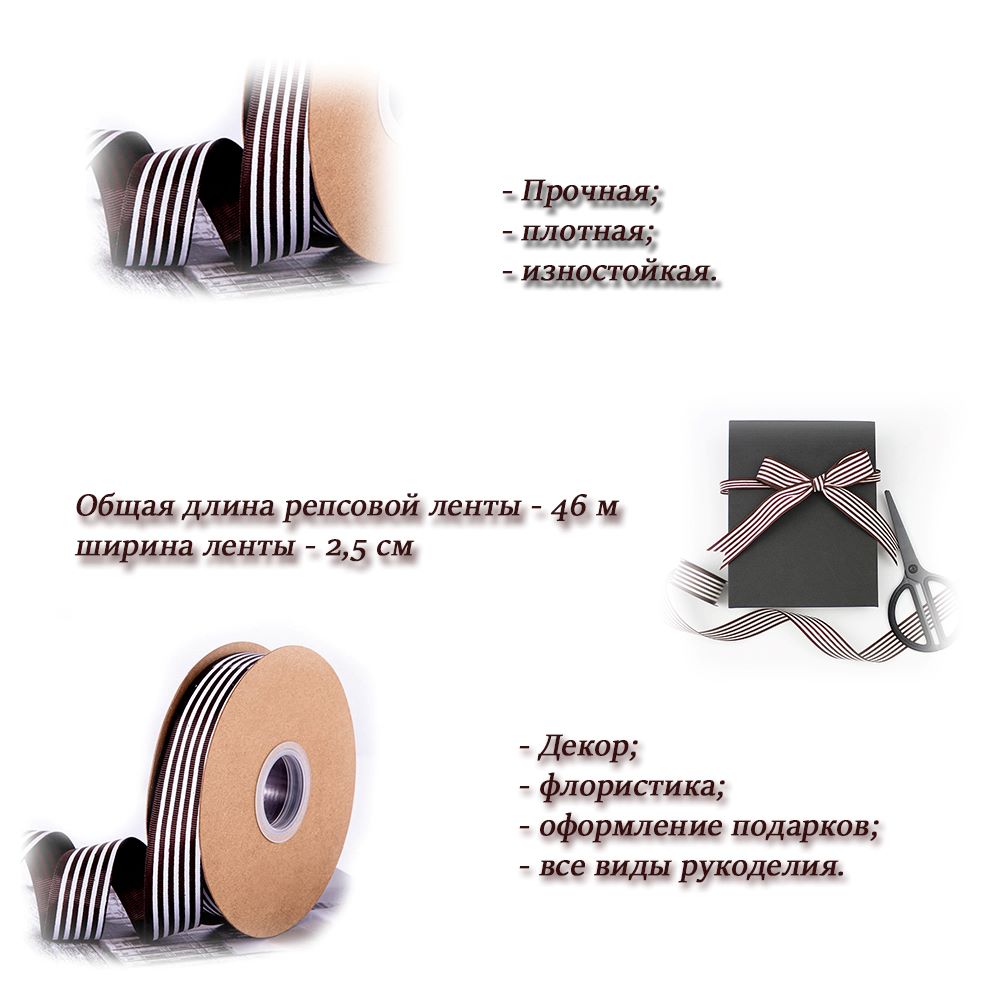 Можно использовать в виде упаковочной репсовой ленты, как жаккардовую тесьму, широко применяется в шитье.