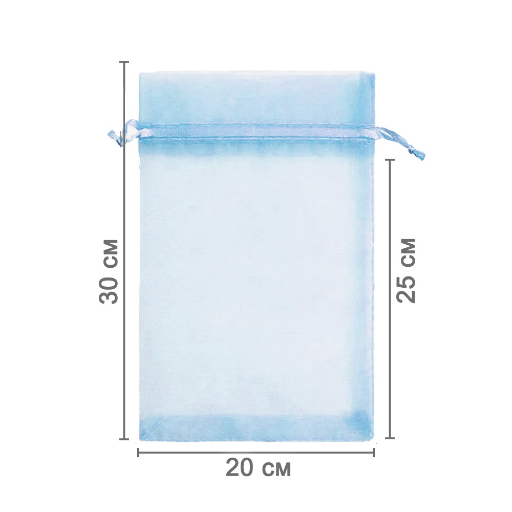 Мешочек из органзы 20 х 30 см — стильный аксессуар для упаковки средних и крупных предметов. Полупрозрачная ткань подчёркивает содержимое и придаёт аккуратный вид.
