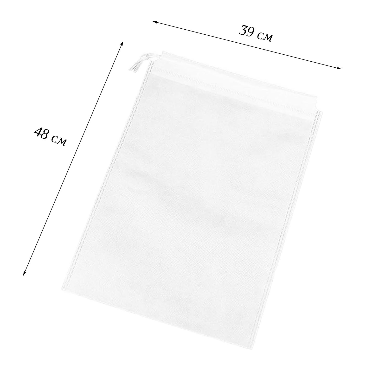 Мешочек из спанбонда, размеры 48х39 см, со шнурками, подходит для многоразового использования. Плотность материала: 55 г/м². Обеспечивает защиту от пыли, влаги и внешних воздействий.