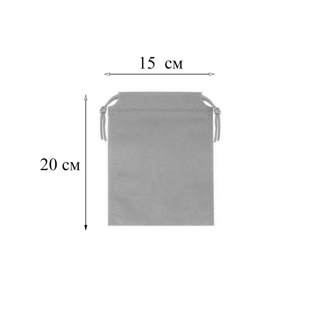 Мешочек из спанбонда, размеры 20х15см, со шнурками, подходит для многоразового использования. Плотность материала: 55 г/м².