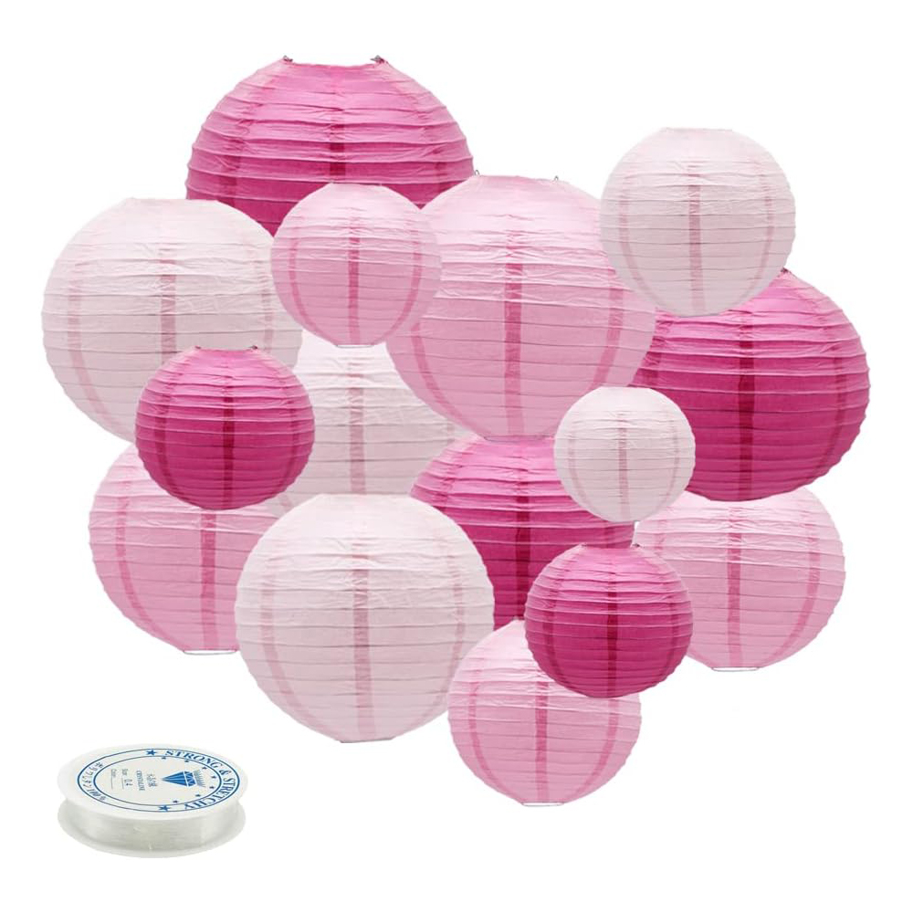 Набор подвесные фонарики 15 шт + леска, св.розовый+розовый+малиновый