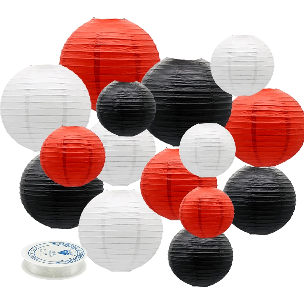 Набор подвесные фонарики 15 шт +леска белый+красный+черный