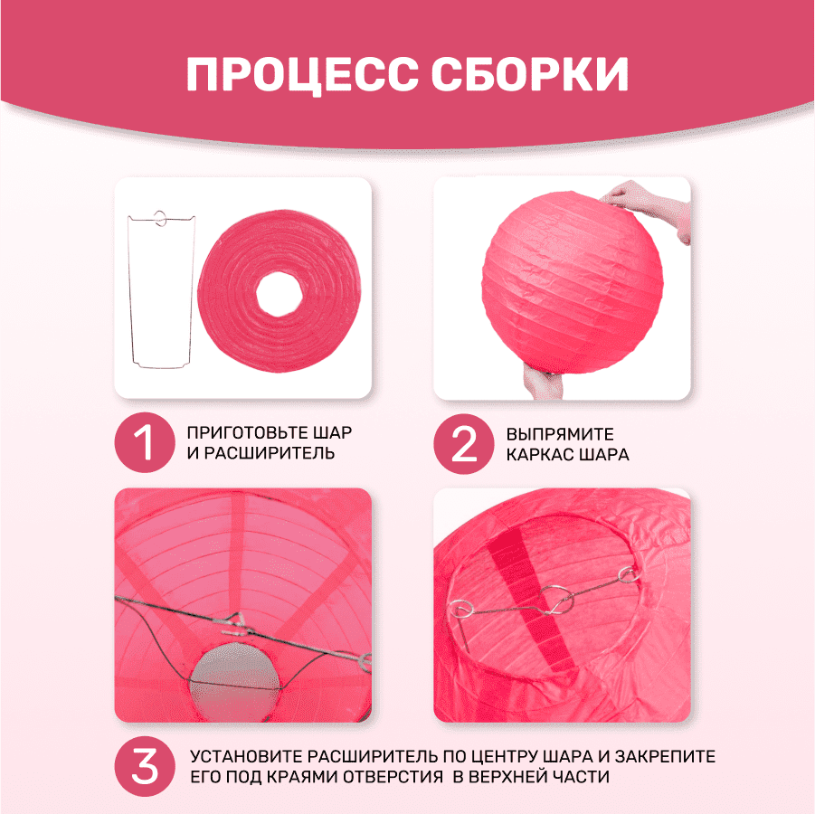 В комплект входит 8 бумажных фонариков и лента атласная.