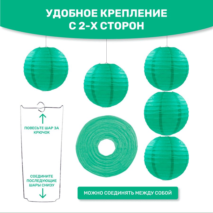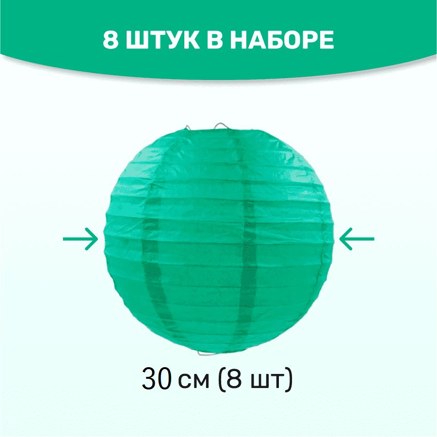 Комплект подвесные фонарики 30 см х 8 шт, изумрудный