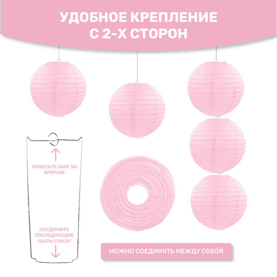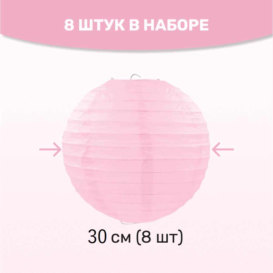 Комплект подвесные фонарики 30 см х 8 шт, розовый