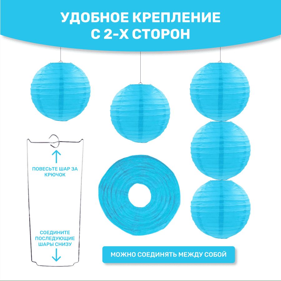 Комплект подвесные фонарики 30 см х 8 шт, светло-синий
