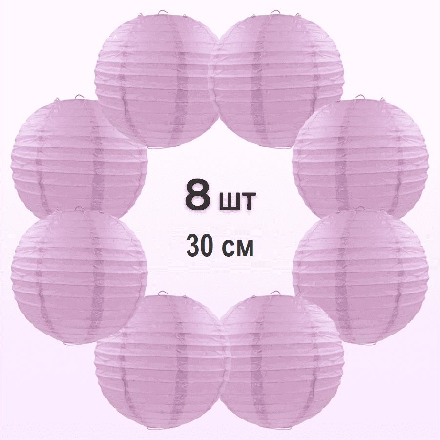 Комплект подвесные фонарики 30 см х 8 шт, светло-сиреневый