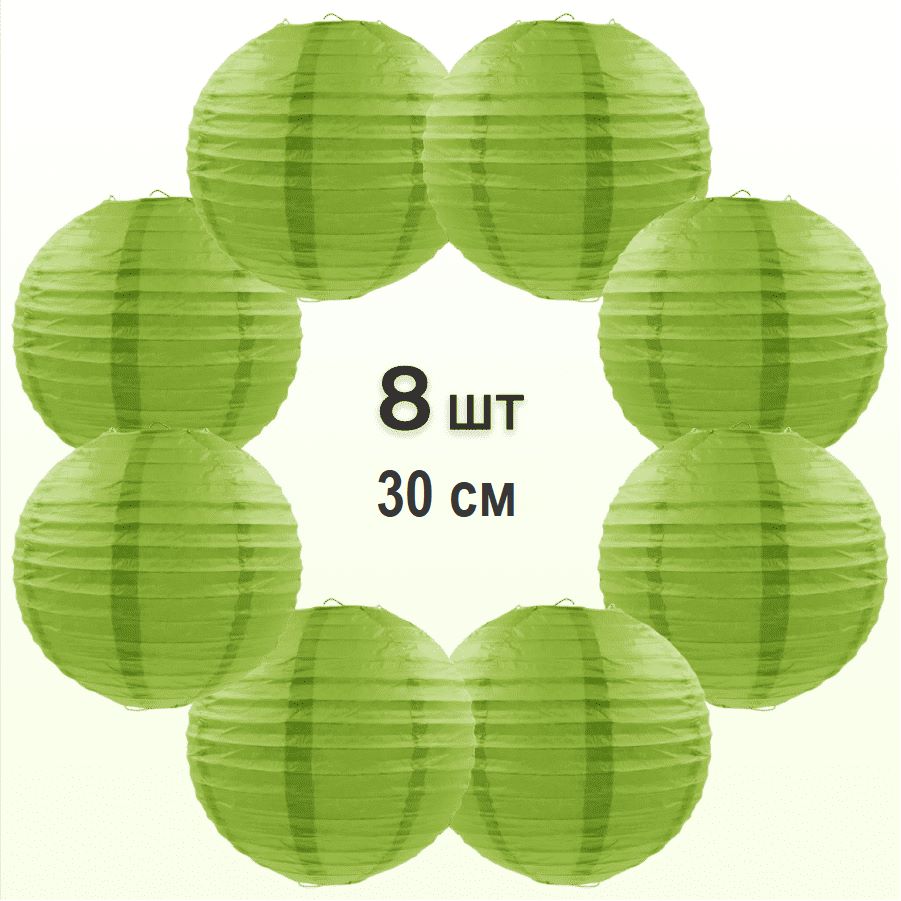 Комплект подвесные фонарики 30 см х 8 шт, темно-салатовый