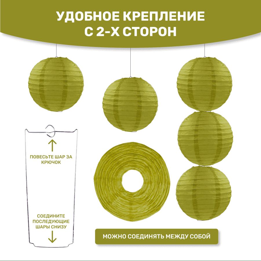 Комплект подвесные фонарики 35 см х 8 шт, фисташковый
