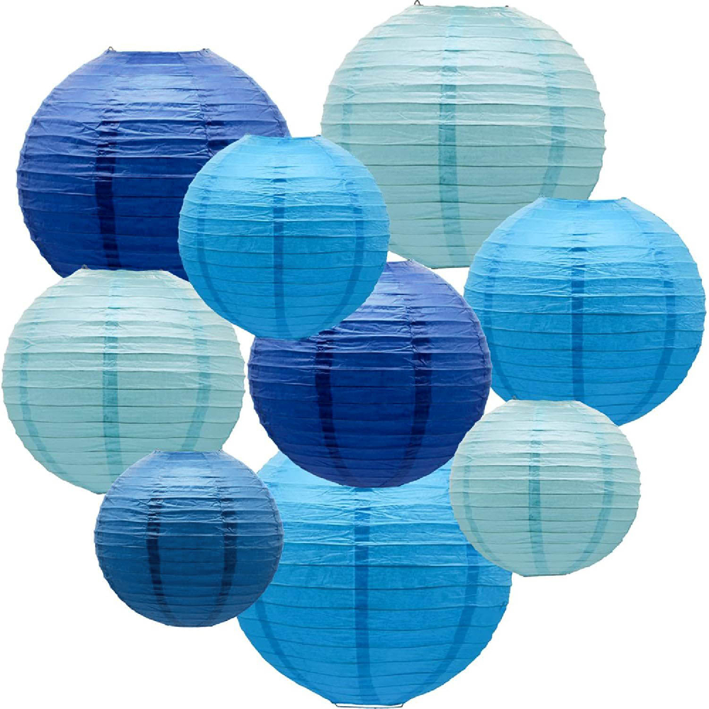 Набор подвесные фонарики 9 шт, синий+т.синий+голубой