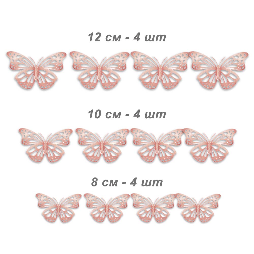 Наклейки Бабочки № 11 бумага металлик 12 шт розовое золото