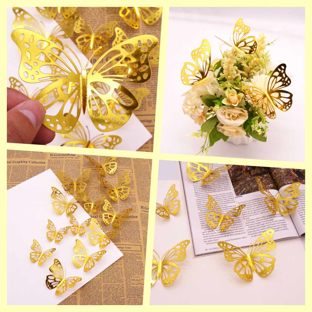 Наклейки Бабочки № 11 бумага металлик 12 шт золото