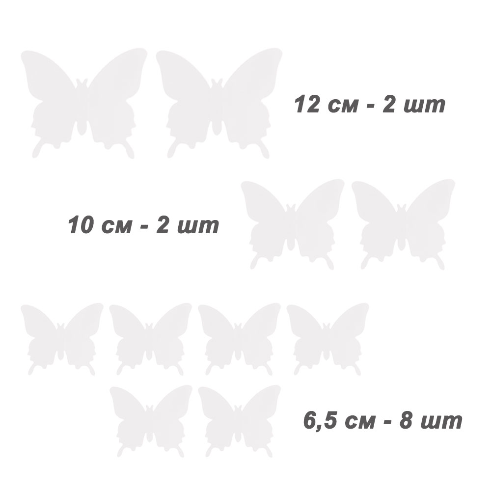 Наклейки Бабочки пластиковые № 8 12 шт матовый белый