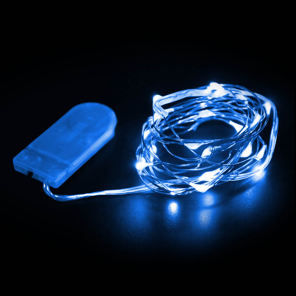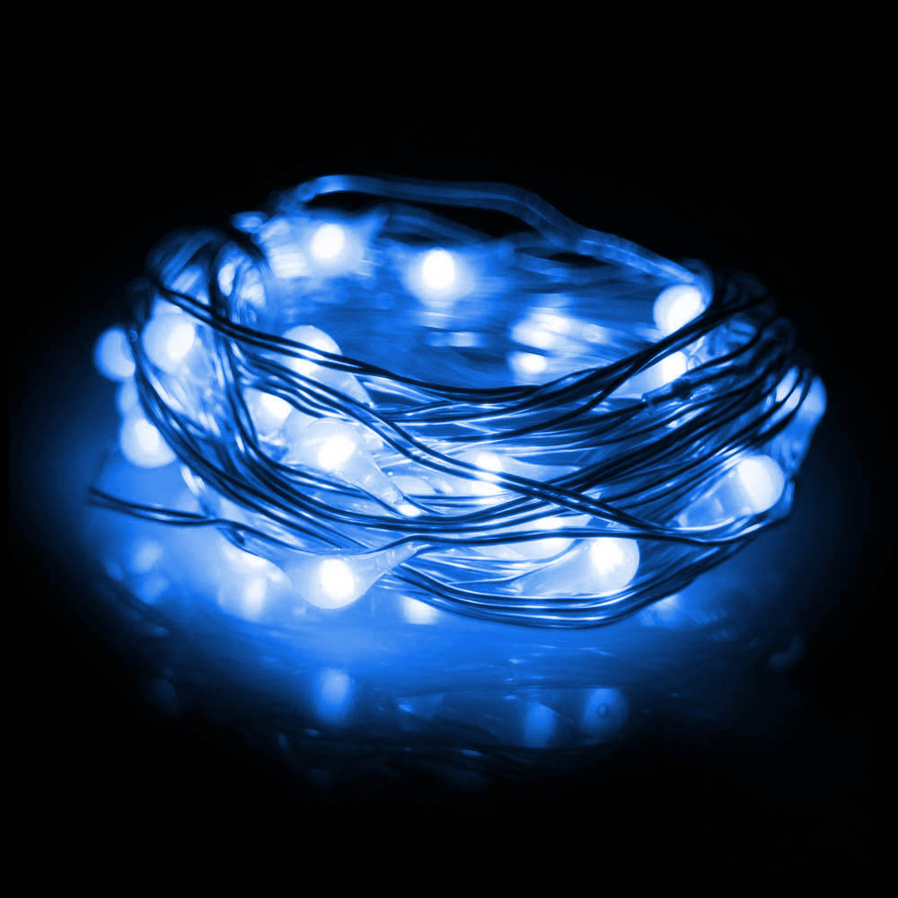 Нить "Роса" серебро, 2 м х 20 диодов, от батареек, синий