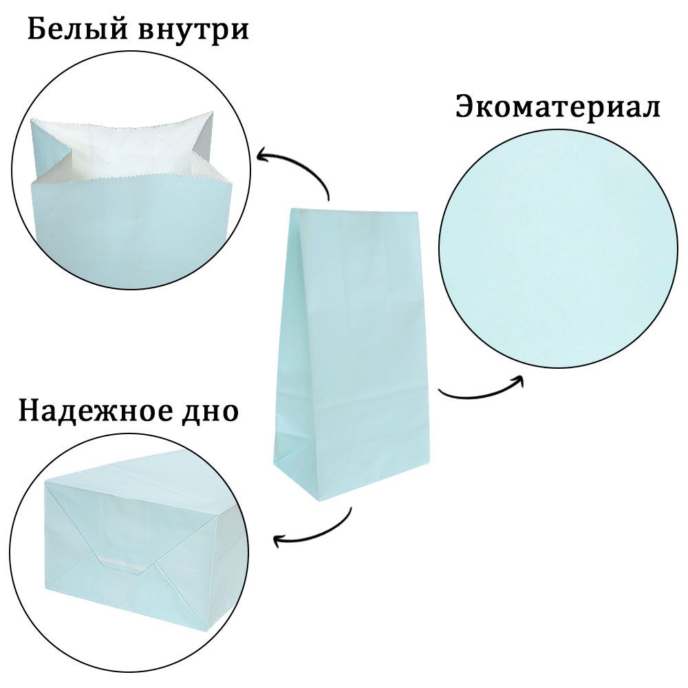 Подарочный пакет из крафтовой бумаги пастельного оттенка с белыми бумажными ручками и белой внутренней стороной.