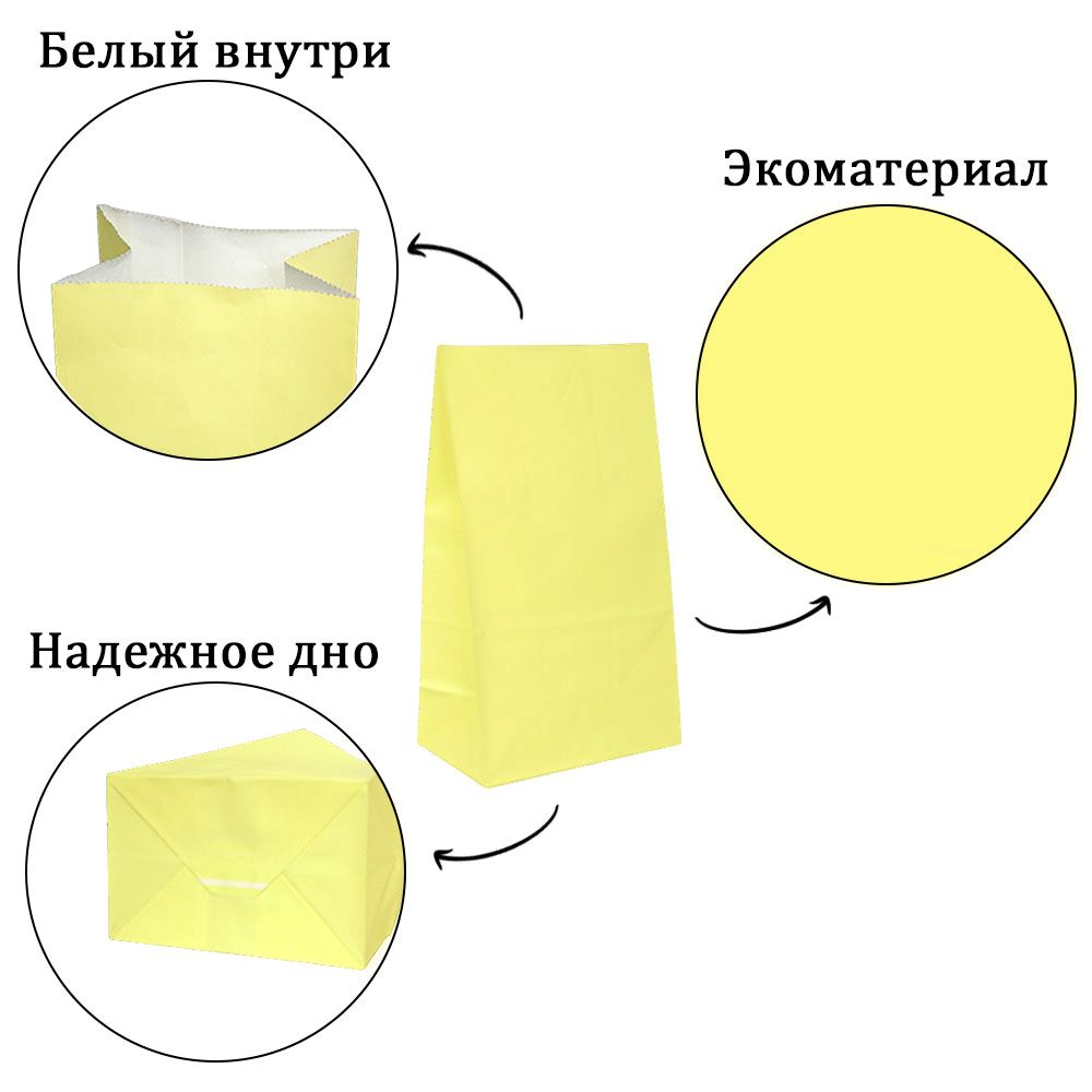 Подарочный пакет из крафтовой бумаги пастельного оттенка с белыми бумажными ручками и белой внутренней стороной.