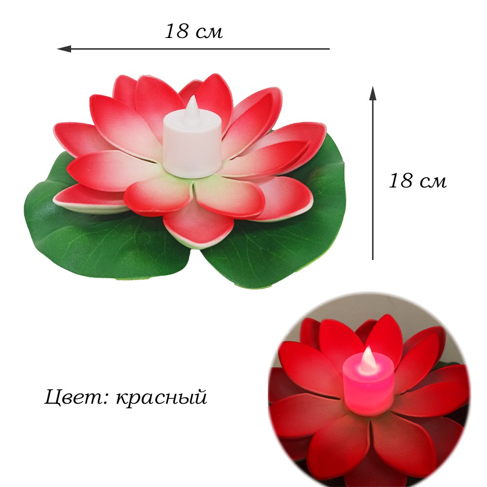 Плавающий фонарик Кувшинка со свечей 18х18 см, алый