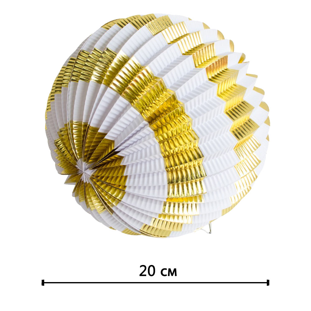 Подвесной фонарик "Аккордеон" 20 см вертикальные полоски, Золото