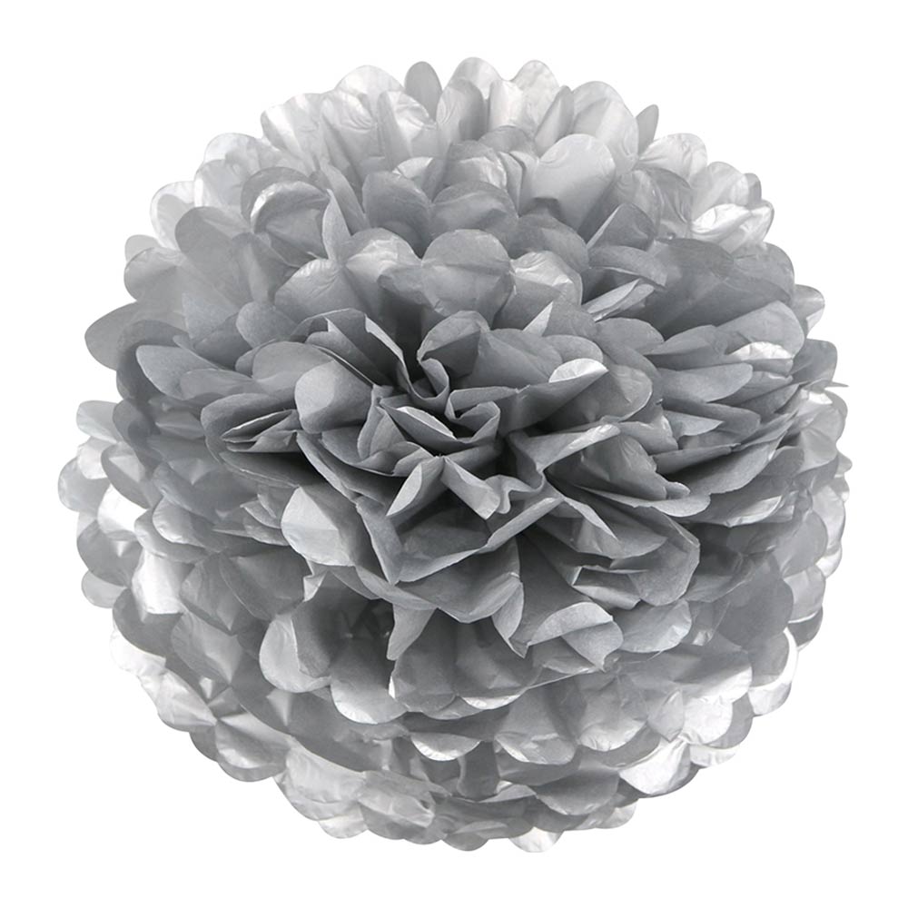 Серебряный бумажный помпон диаметром 45 см — стильное и лёгкое украшение для праздников, фотозон, витрин и интерьера. Отлично подойдёт для дней рождений, свадеб, вечеринок и тематических мероприятий.