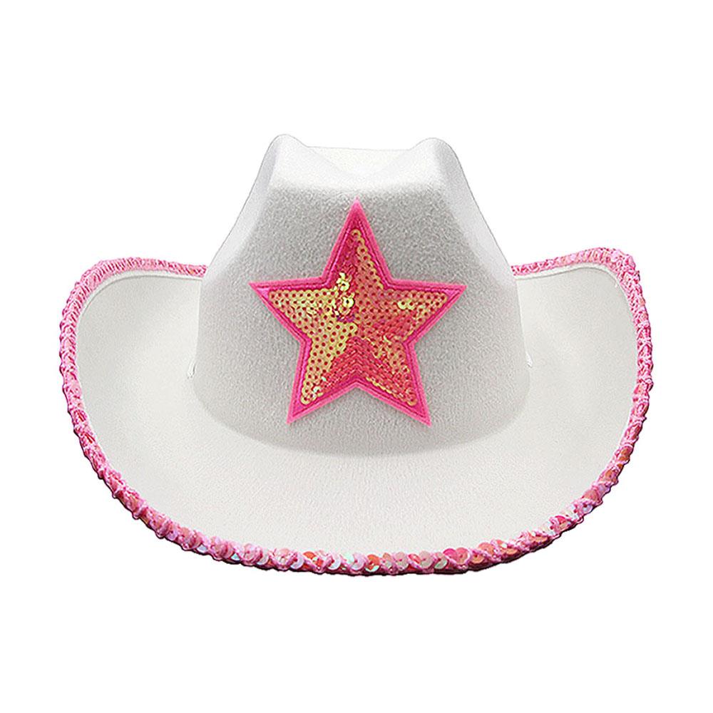 Шляпа ковбойская с блестками и звездой, белый
