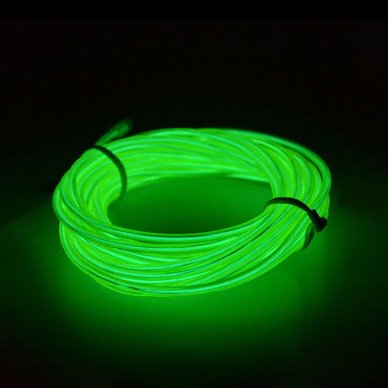 Шнур неоновый светящийся, зеленый. Можно применять для праздничного украшения интерьера, а также для декора танцевальных костюмов, новогодней елки, подарков, игрушек.